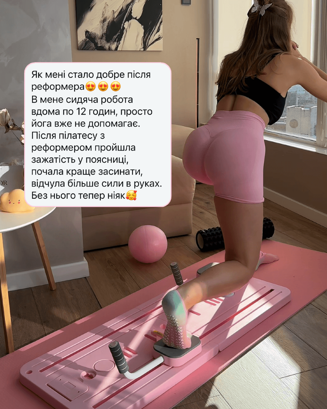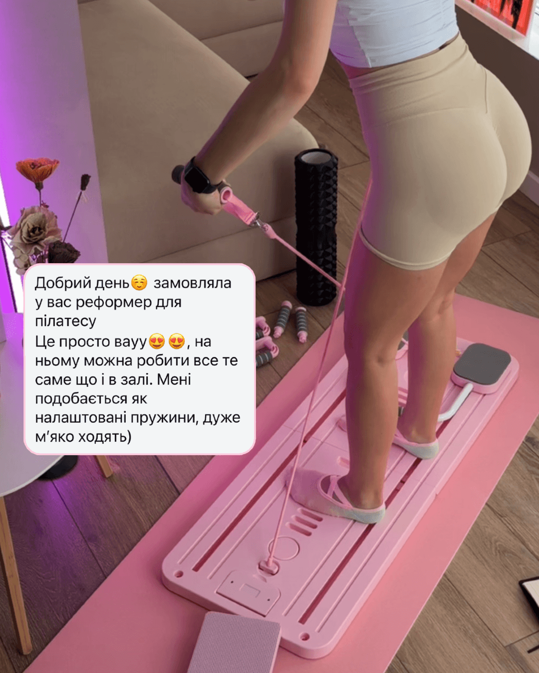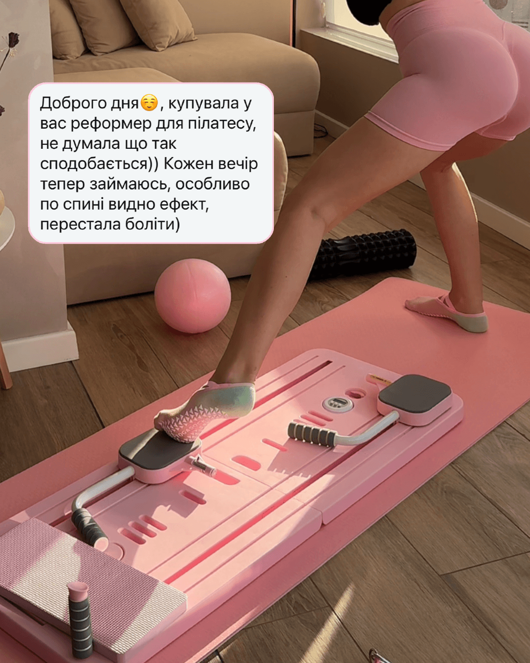 Так, реформер підходить для самостійних тренувань за програмами або відеоуроками. Він створений для безпечної та контрольованої роботи з тілом вдома.